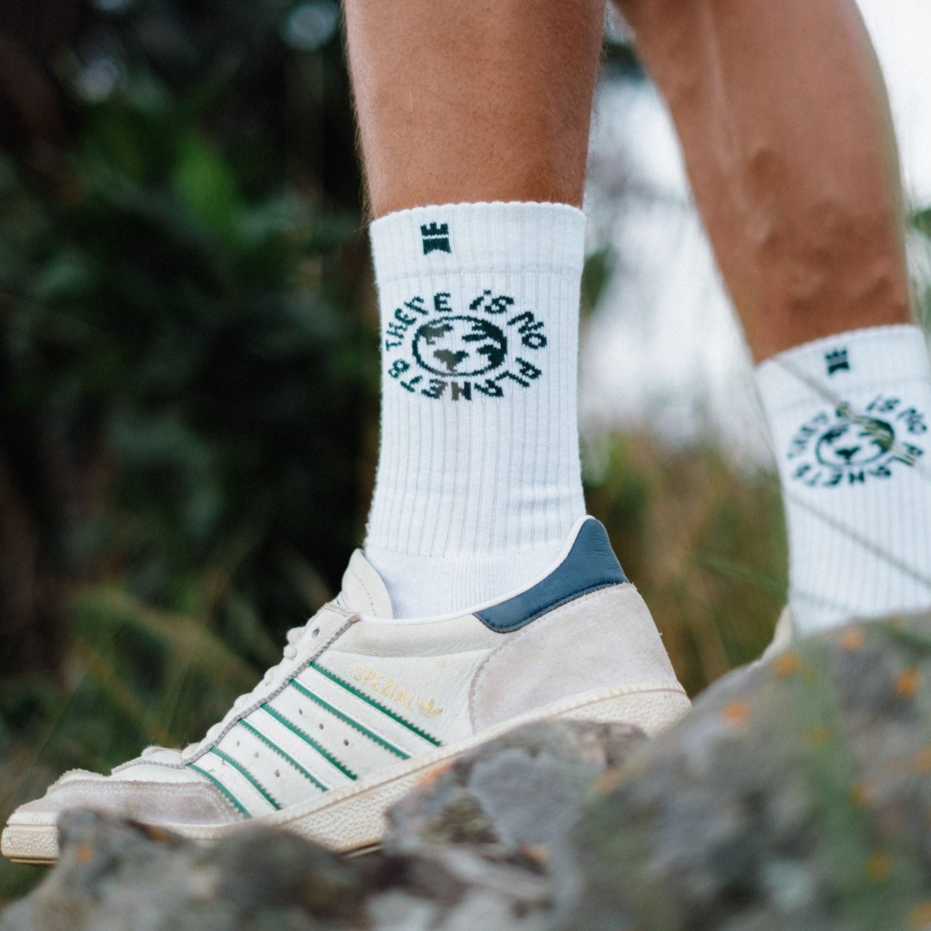 Our limited edition 2025 Earth Day socks are an ode to the planet we call home: Our Earth. Made on a white sock with a ribbed design, these socks can be worn casually or any performance activity, while carrying the important reminder that there is "No Planet B".